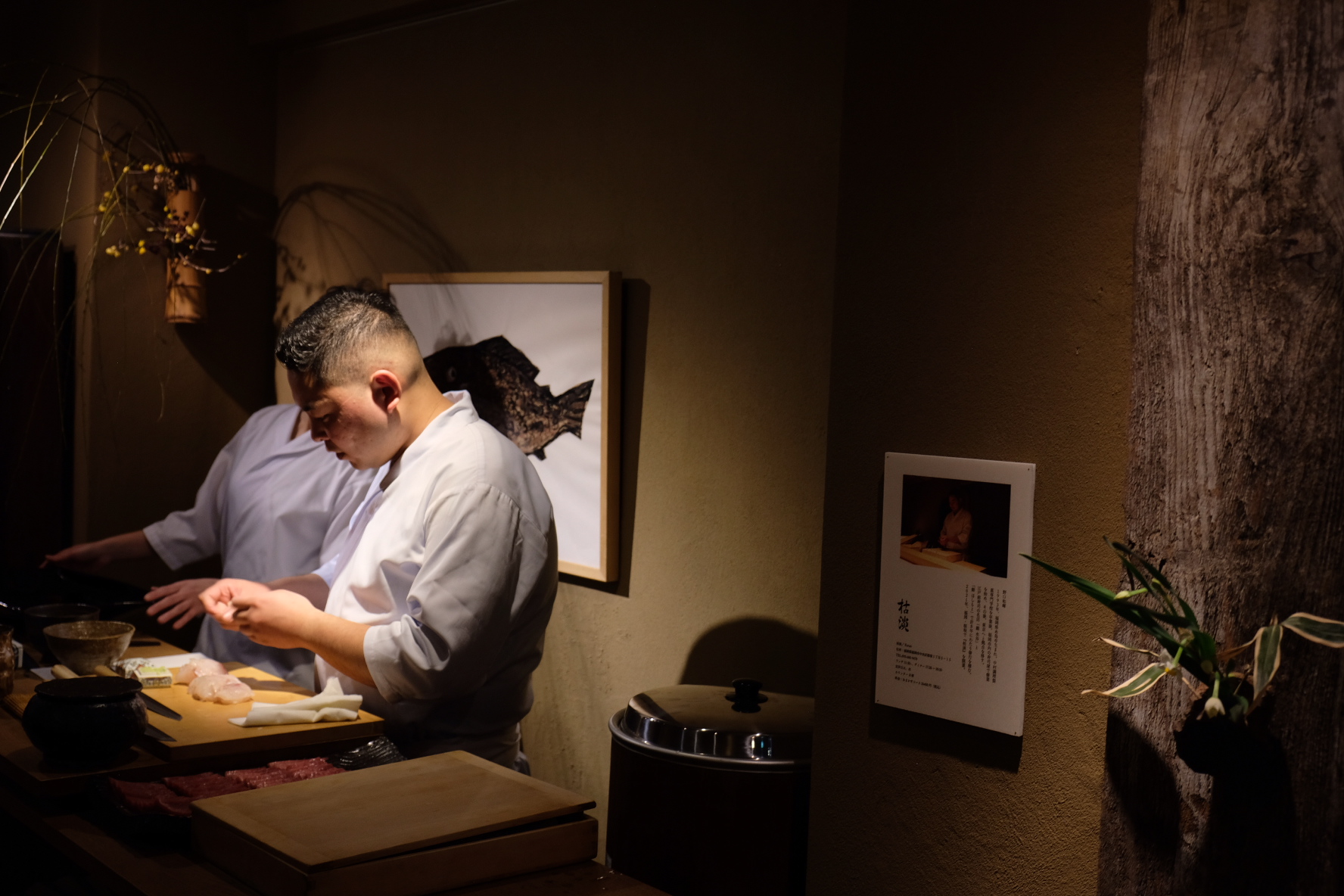 1993年、福岡県糸島市生まれ。中村調理製菓専門学校を卒業後、福岡市内の寿司屋で修業を始め、その後、東京へと拠点を移す。江戸前寿司の名店「鮨 水谷」と「鮨 はしもと」で計8年にわたり修行を積む。2021年、福岡・桜坂で『枯淡』を開業。